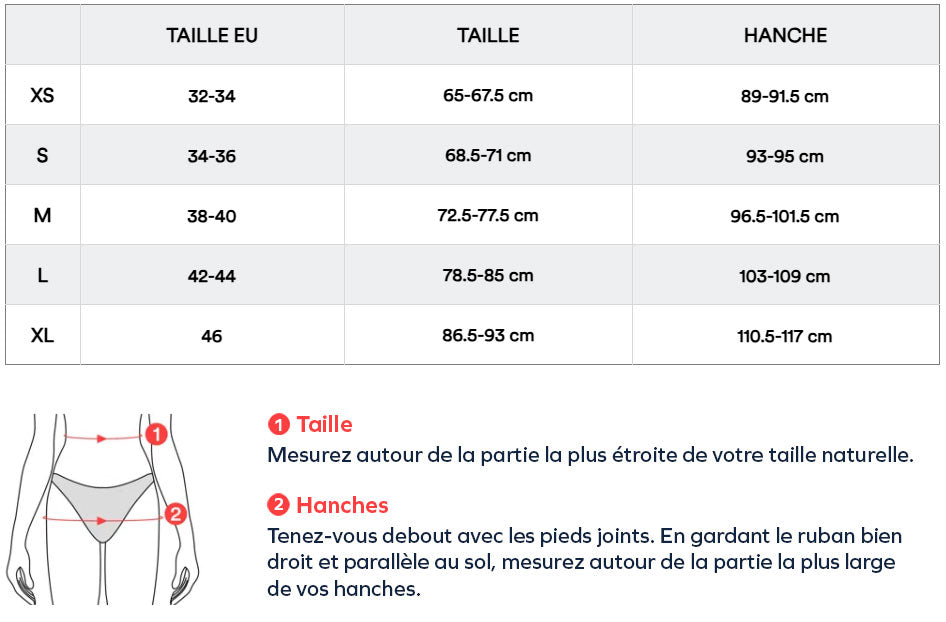 - Tailles disponibles : XS(32/34), S(34/36), M(38/40), L(42/44), XL(46)